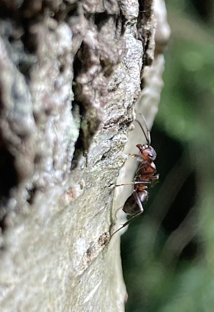 The last two years, there’s been a Southern Wood Ants’ nest against the trunk of this birch – not a particularly large nest, but a nest nonetheless, built from twigs, leaves and pine needles as well as soil. They are the largest species of ant in the UK, at up to 1 cm long, and are voracious predators of small invertebrates, as well as being very territorial. Questing dogs (that includes you, Bill and Mr Bundy) may want to think twice about poking their noses too close if they don’t want to be sprayed with formic acid.