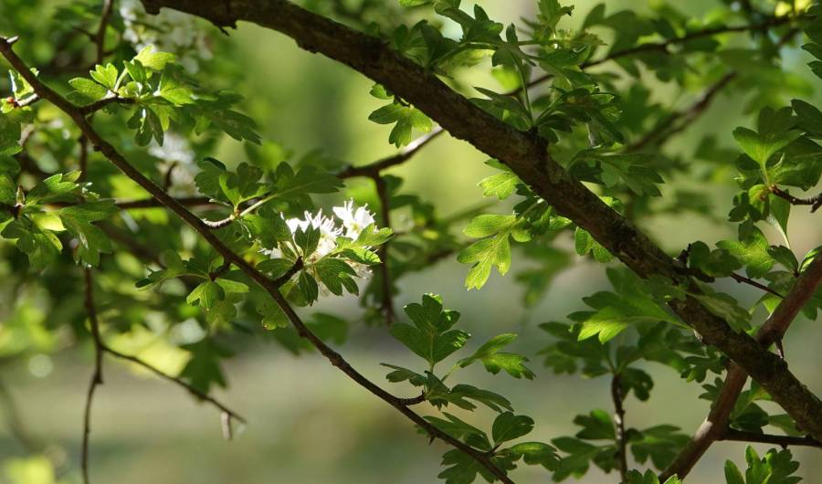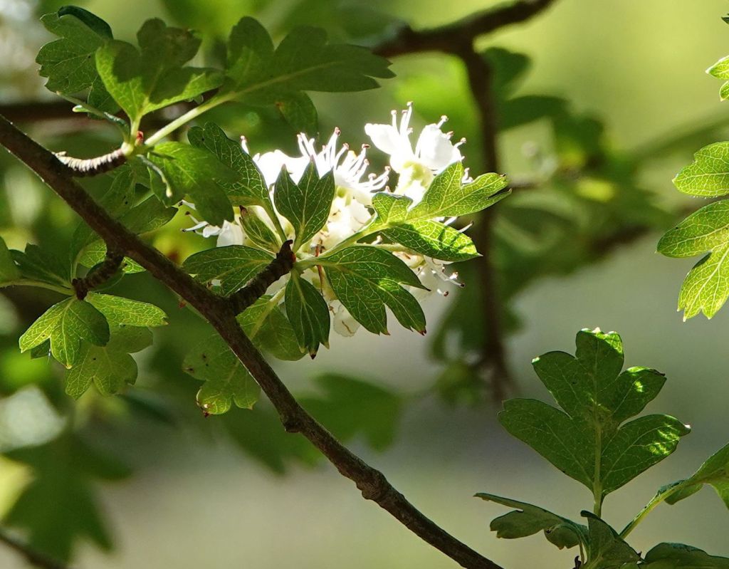 Hawthorn (Crataegus monogyna) – all gnarled bark, thorns, and dense leaves and twigs, with its green lobed leaves, white-pink blossom in spring and red berries (haws) in autumn – is one of the loveliest and friendliest small trees there is. A tree of hedgerow, scrub and wood, it is found across the Forest, especially in sunny clearings and at the woodland edges. Seeing the fresh white of its blossom along the ride lifts the subdued mood that has settled over us. This is, after all, a tree long believed to have protective qualities. It supports over 300 insect species: it is the foodplant of moth caterpillars, such as the Lackey, as well as being an important nectar source. Find out more about this beautiful tree on the Woodland Trust’s website.