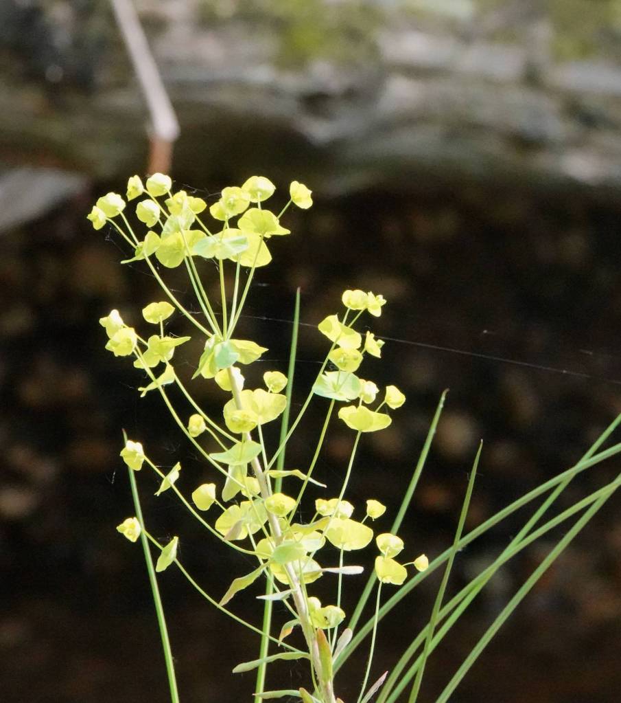 The track twists downhill, goes through a gate and crosses a ride, through another gate, and so onwards, towards Latchmore Brook. Holly grows beneath the oaks, mostly with a clear browse line where the deer have been nibbling. I recognise some of the bird song – Blackbird, Robin and Wren, and the noisy flight of Woodpigeons. Squirrels bound across the forest floor and scamper up trees. As I reach Latchmore Brook, I disturb a Grey Wagtail, and it flies off downstream. Following it a short way, I don’t see it again, but I do find streamside wildflowers.