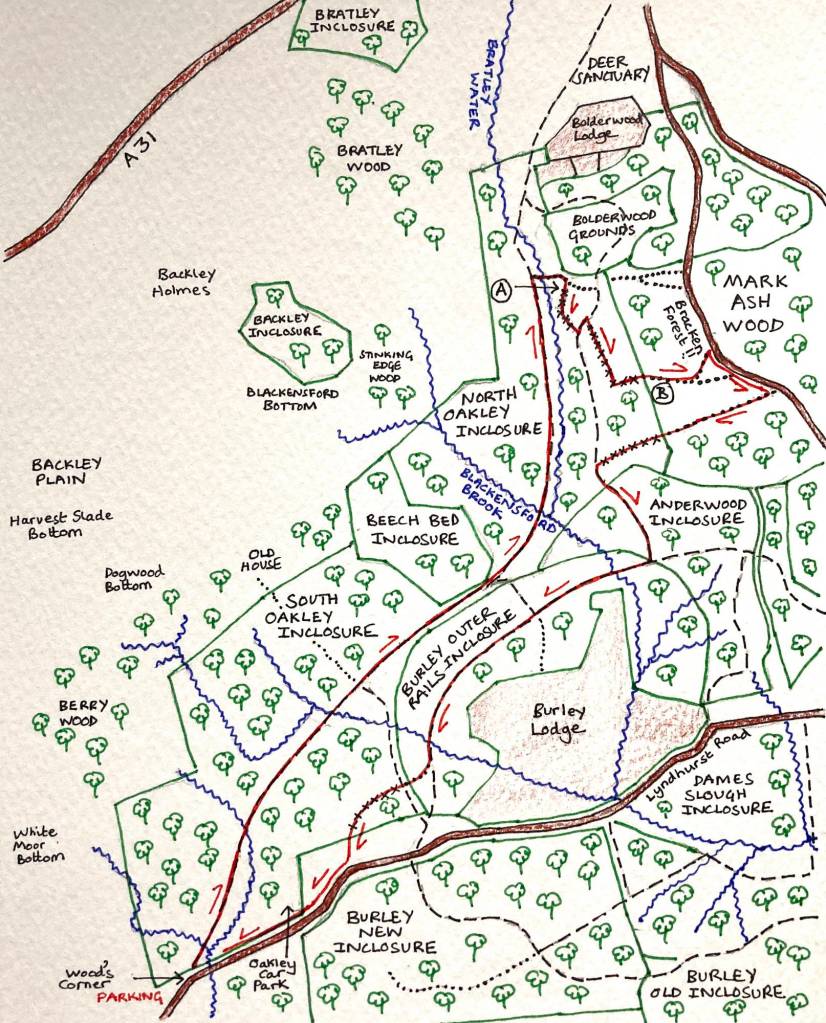 If you have a copy of Joan’s book Walking in the New Forest, then you might like to turn to pages 104 to 111 for her description of the walk she took.