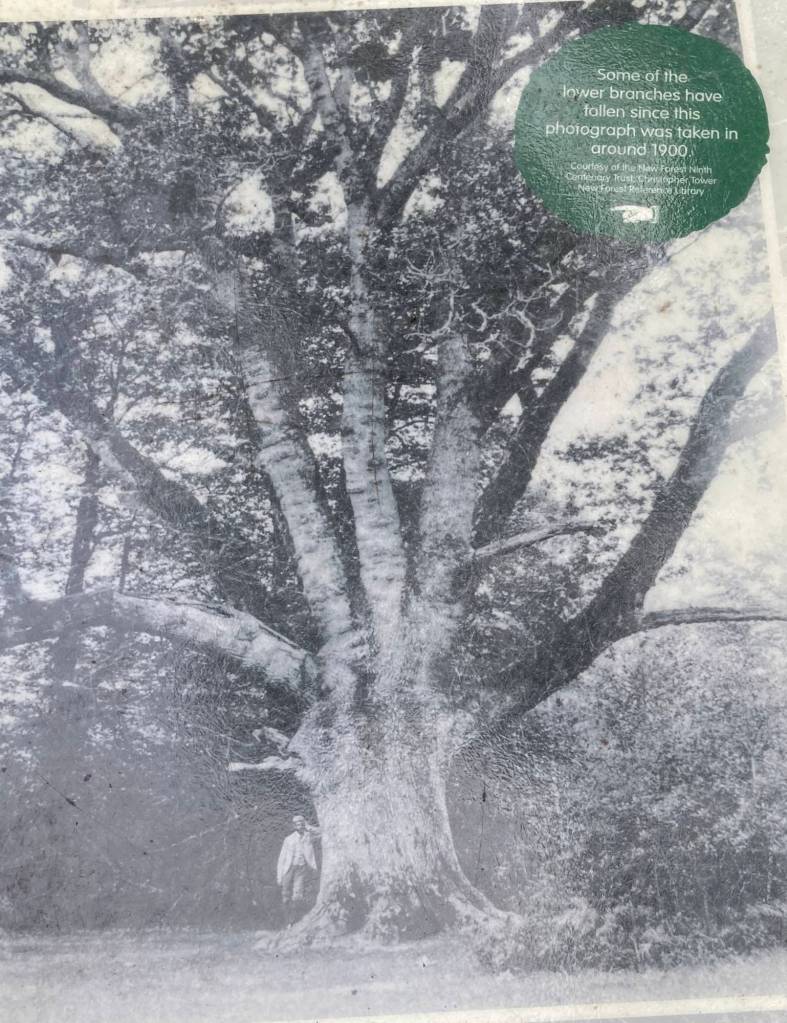 Joan was impressed by the Knightwood Oak. The tree is now estimated to be over 500 years of age, so Joan met it when it was celebrating 400 years of Forest life. Its girth is almost eight metres. Also known as Queen of the Forest, the Knightwood Oak was pollarded in its youth, which explains its shape, with limbs branching from above head height, even though it has not been pollarded for almost 300 years. Joan’s description – of a tree with “huge branches thrusting fiercely up like a young forest” – suggests that she saw it before some of its lower limbs dropped in more recent decades.