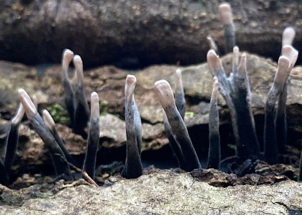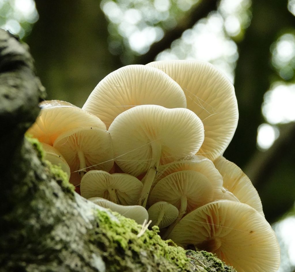 Emerging from the eaves of old Eyeworth, one thing is the same: the path marked on the map as a byway is non-existent. The OS map legend states: “Rights of way are liable to change and may not be clearly defined on the ground.” You’re telling me. As it is well past groundnesting bird season, we follow where the path should be, and are rewarded by a fallen branch of Beech, still partly attached to its parent, that is full of a wonderful variety of fungi.