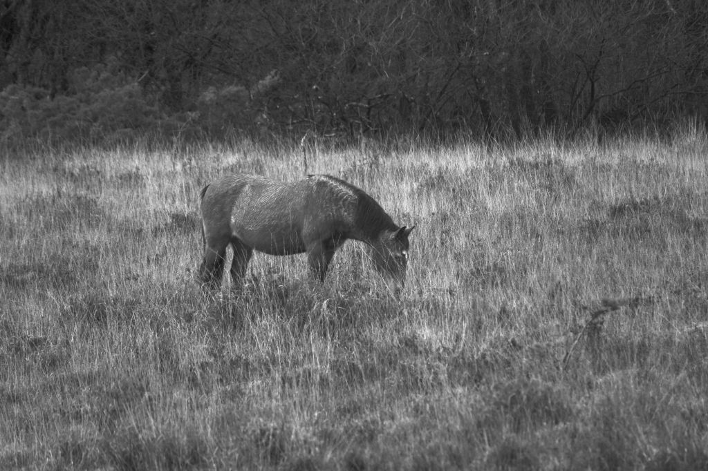 Just a short way along Station Road, a stony path heads off westwards across the open heath below Goatspen Plain, travelling roughly parallel to the section of the Corkscrew track I walked earlier. This path isn’t marked on the OS map, but it’s quite clear: sometimes gravelly, sometimes a muddy and narrow way between gorse, sometimes no more than a pony path, but always visible. The temperature is dropping and the sun has once again retreated. A pony neighs to my left, a reed bunting calls from near Avon Water, a cold breeze is tingling my fingertips. It’s become rather grey and I feel quite alone – not lonely, but a little…unsettled. I can’t work out why, but I suppose the landscape is flat and wintry, gorse and other shrubs hide what lies ahead round each corner, the air smells of moss and wet earth and, of course, there is no traffic noise from what would usually be the very busy A35. Not that I miss the constant thrum of cars and lorries – far from it – but I am becoming very aware of the silence underlying the sounds and smells of the heath. I pull my coat tight around me and move on, feeling as if I have wandered into an M. R. James ghost story. I miss the tree-lined railway track and the siskins.