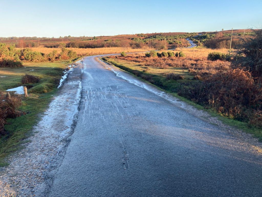 I quickly, and disappointedly, work out that there is no way to cross the A35 here, and avoiding the roadworks would have taken me a tidy step out of my way. I see a sole driver looking lost, and a group of cyclists doubling back, so it isn’t just me that hasn’t pre-planned carefully enough. I turn about, following the cyclists up Station Road. A sole cyclist travels along a track just to right of the road, as if he has come from the A35. He waits for me – he is a charming, gently spoken older man – and tells me he has made it across by climbing over the fences either side of the A35. Respect to him, I think. Now, I could have tried this myself. However, getting stuck trying to climb over things – fences, gates, etc. – is one of my main countryside ‘skills’ (the other two are losing the lens cap of my camera and falling over in muddy bits). Therefore, I decide instead to head on back to Burley via a slightly different route.