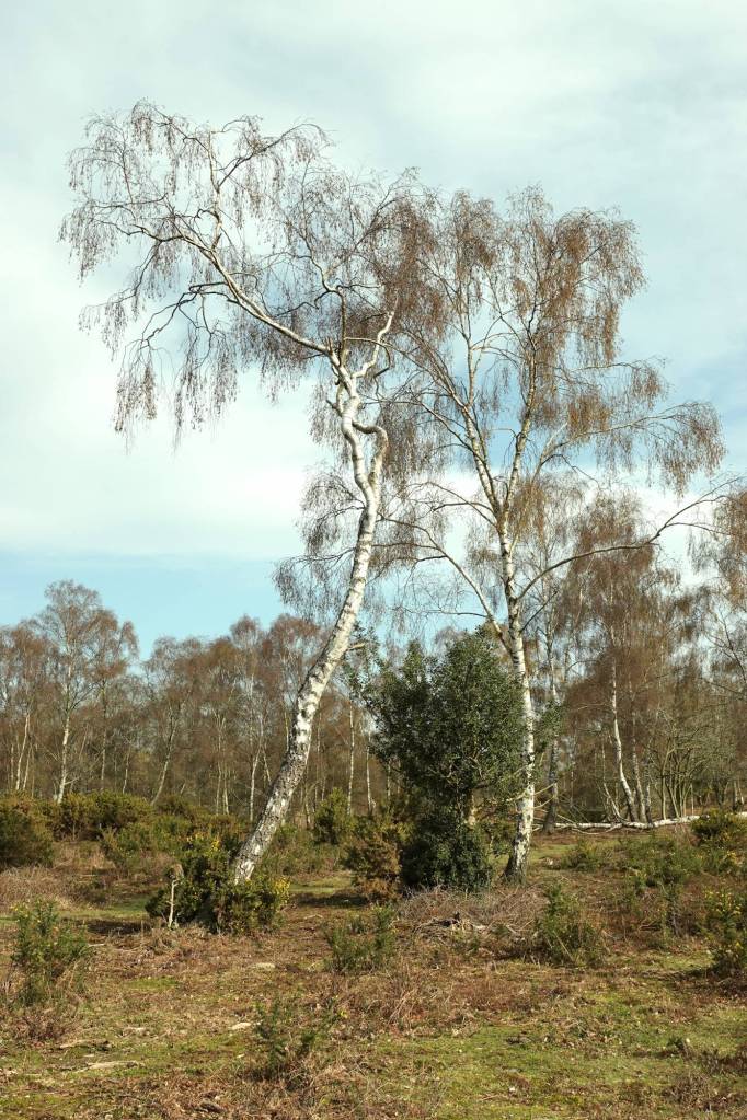 There are many birch trees growing in clumps across Rockford Common, seeded from the woods that edge the heath. Their almost luminous white bark, on a grey day, is quite ghostly, especially when stands of them form rows against the heath beyond, as if spirit guardians of the woods and plain. This feeling is enhanced by the way they sometimes grow in twists and bends, leaning towards each other to share an anecdote or whisper tales of the woods.