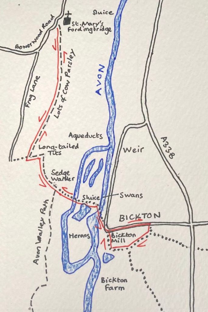 I did the walk early this morning Amanda, starting at Bickton Village. It was glorious. I stood on the bridge over the main river and recorded a video, with a Cetti’s Warbler shrieking in my ear!