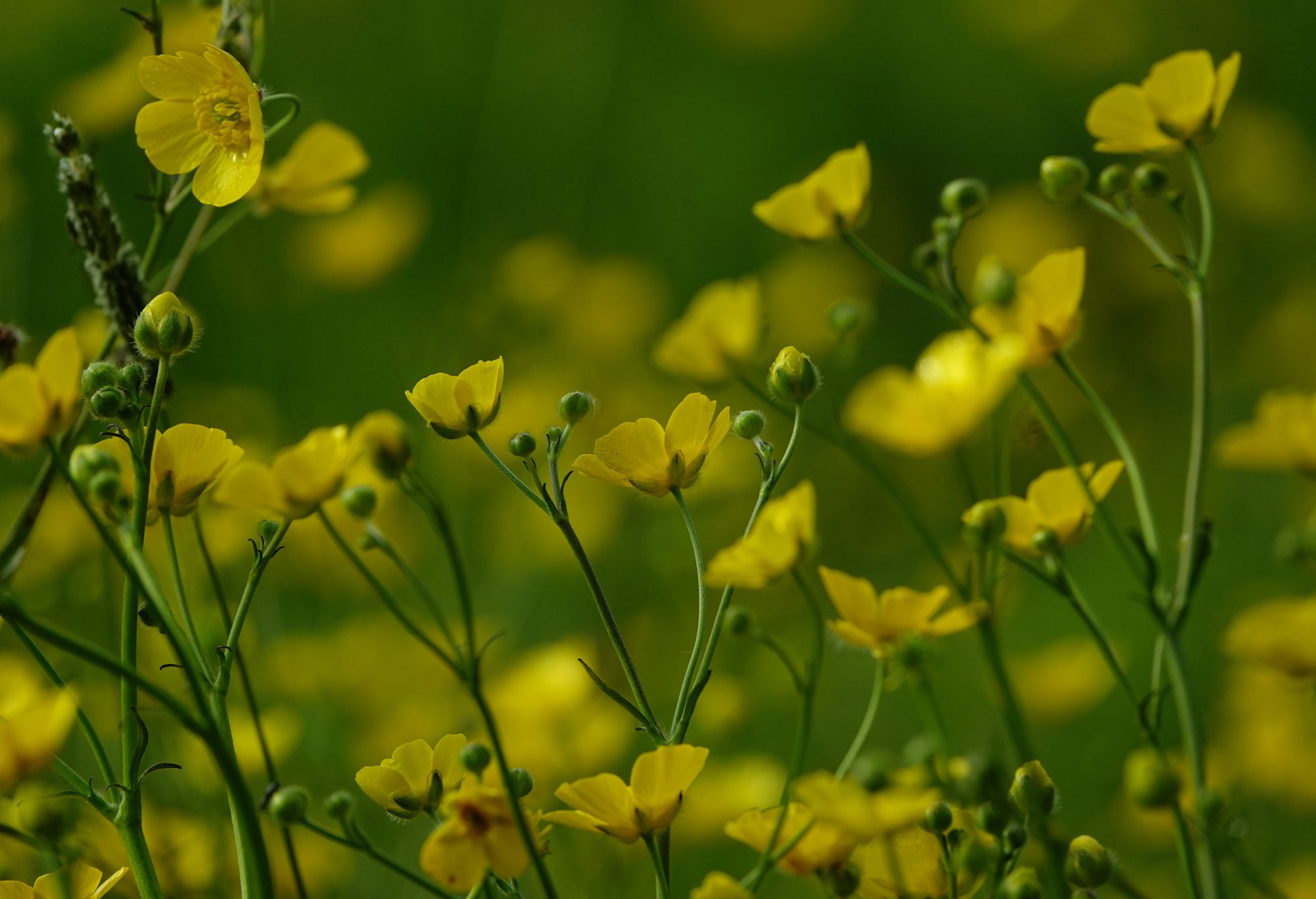 There are other delights. A single Wild Rose flower, waiting for its companions to open; Hemlock Water-dropwort, poisonous but beautiful, a plant of waterways and parasol flowerheads; a field of Meadow Buttercups and frothy Dandelion seedheads; Red Campion and Speckled Wood butterflies, and there, an Orange-tip, bright as poster paint, hurtling by.