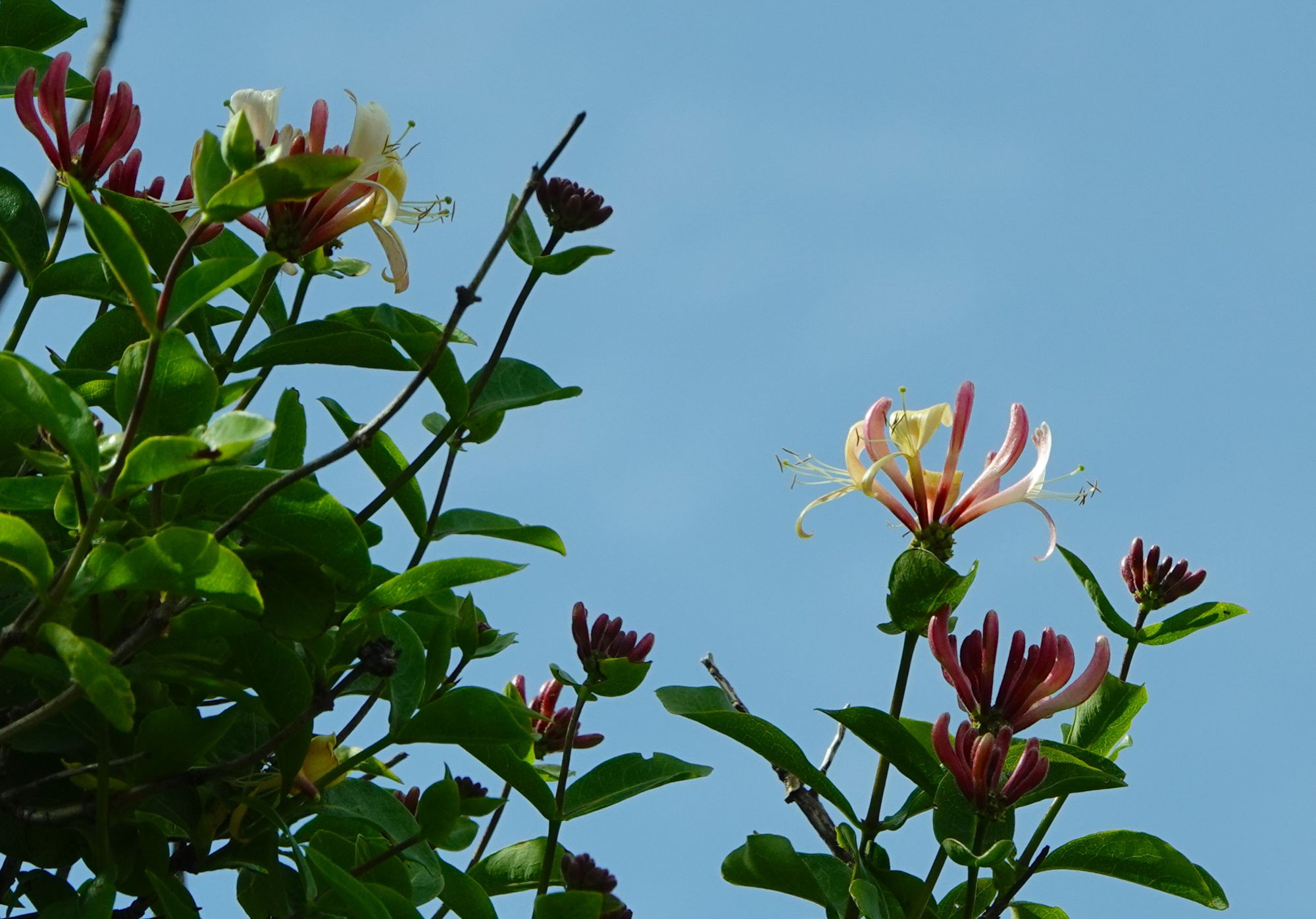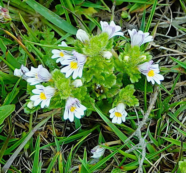 The wood is full of flowers and, indeed, so are both Highland Water behind us and the heathland ahead. Below are: top row, left to right – Common-spotted Orchid (near Withybed Bottom); Honeysuckle (heathland, near Castle Lucas); and bottom row, left to right – Heath Speedwell (Puckpits Inclosure); Eyebright (Mogshade Hill); Flag Iris (pond in Highland Water Inclosure); and Foxglove (everywhere!).