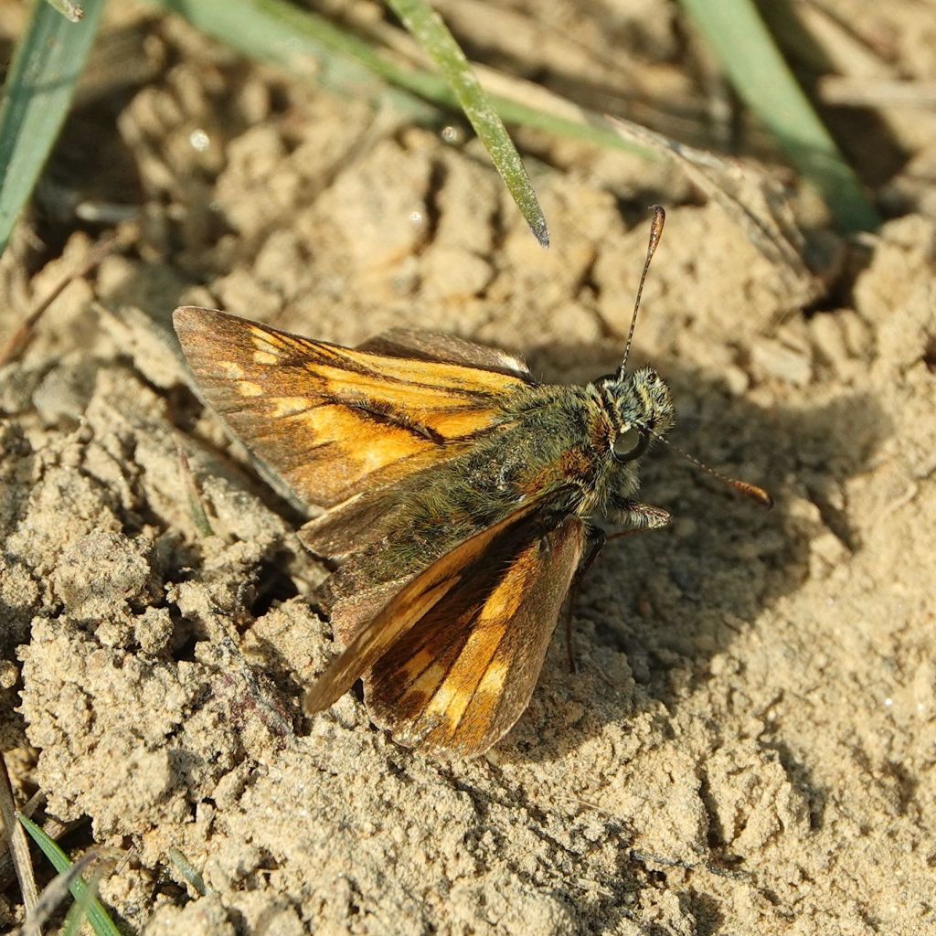 The Large Skipper in Dibden Inclosure moved off too fast for a photo, but this is an image I took last year, just to illustrate the way it holds its wings to bask.