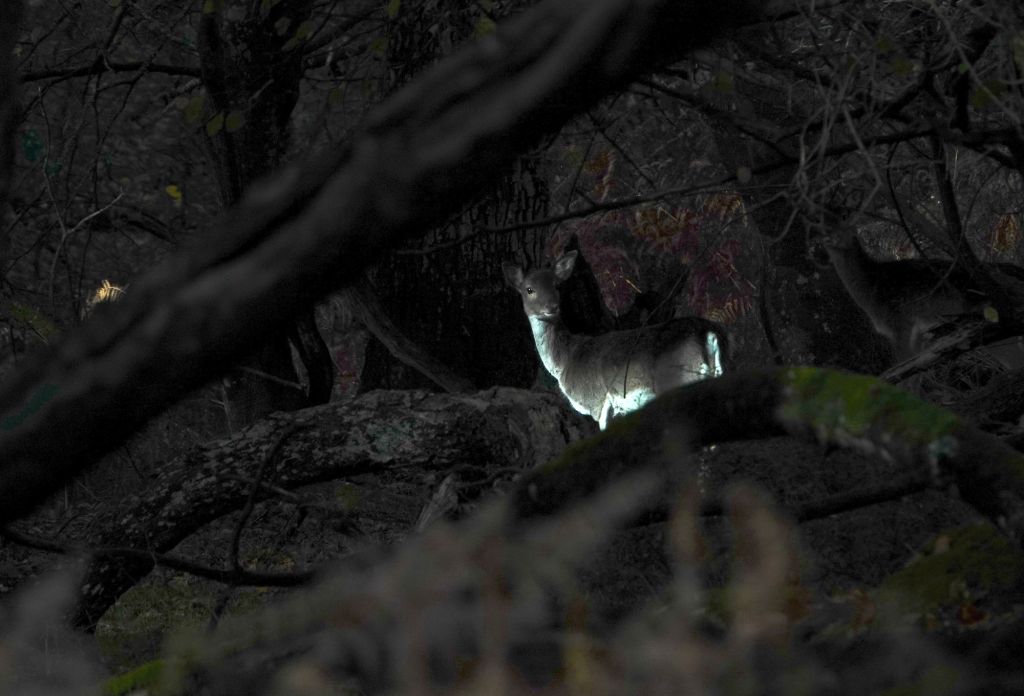 Mark Ash is ancient woodland, unenclosed, and the largest beech wood in the New Forest. The nearest car park is at Bolderwood, and the most direct route to Mark Ash is to walk a short way south along the Bolderwood Arboretum Ornamental Drive (though you can first walk along a footpath from the car park as far as Bolderwood Cottage). For this reason, you do not meet many people, if any, in the wood, even in summer: they are all mostly heading west towards Bolderwood Grounds, the deer sanctuary, and the cycle tracks beyond. In autumn โ perhaps the most magical time in Mark Ash, with its golden colours, fungi and red holly berries; even the bronzed bracken is lovely โ you are very unlikely to find other folk. It is solitary, but not lonely, a place to linger and watch and listen. It must be very much as Joan found it when she visited, Bill and Mr Bundy at her heels (or, in the case of Bill, dashing ahead and disappearing into the undergrowth in pursuit of woodland scents). Bill would have been very excited by the deer that I saw, hidden among tree shadows.
